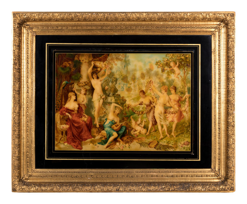 A Continental Reverse-Printed Glass Mezzotint
