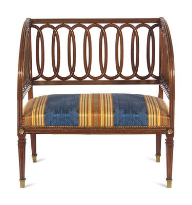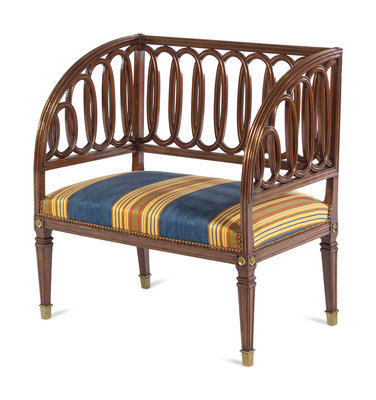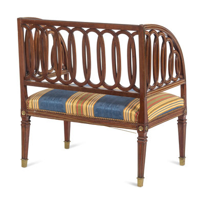 A Russian Neoclassical Brass Inlaid Mahogany Bench