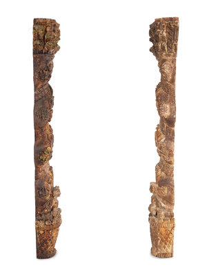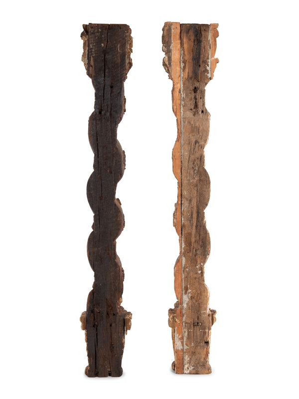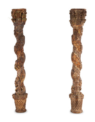A Pair of Carved and Polychrome Painted Columns