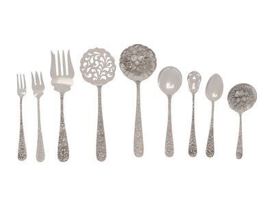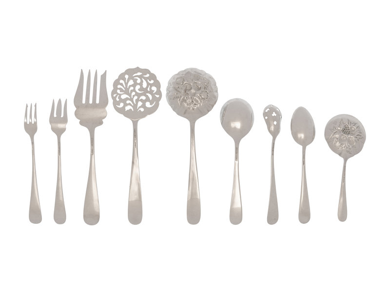 Stieff Rose (Maryland Rose) pattern, with script monogram G on the reverse of each handle, comprising:
