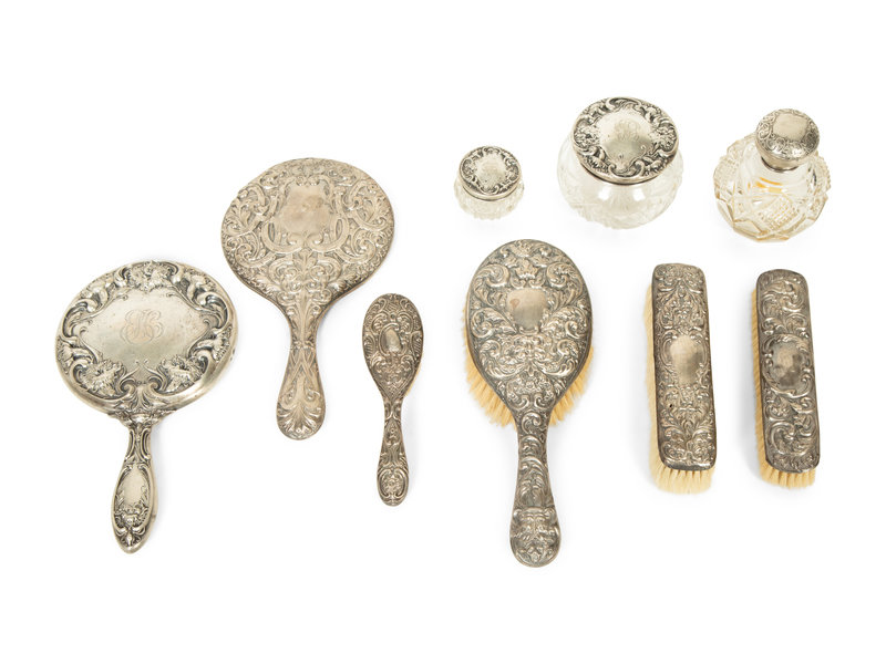 An American Silver Nine-Piece Dresser Set