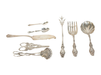Eight Silver and Silver-Plate Serving Articles