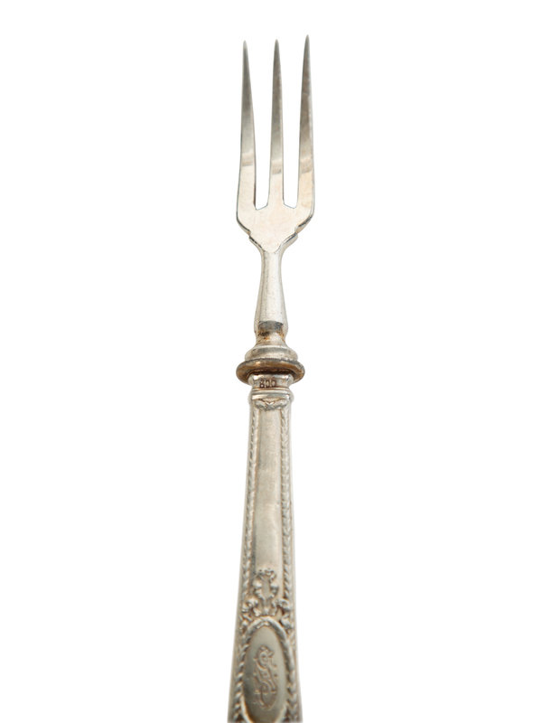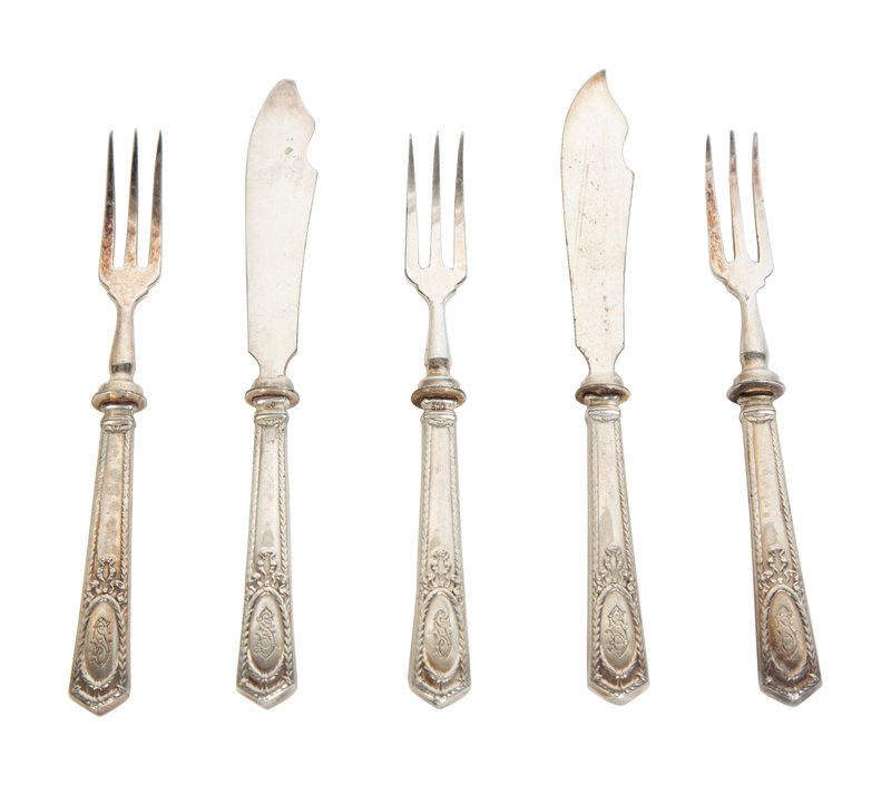 with hollow handles, steel tines and plated blades; stamped .800 on handles.