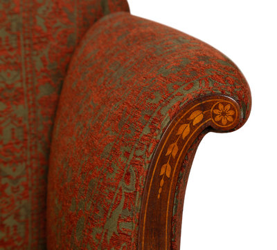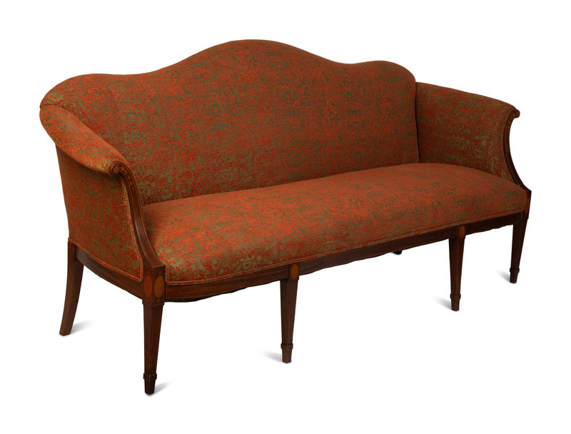 A Federal Style Inlaid Mahogany Camel Back Sofa
