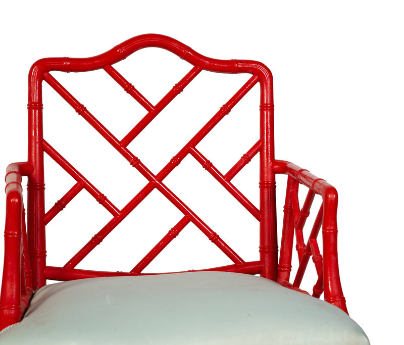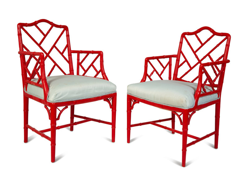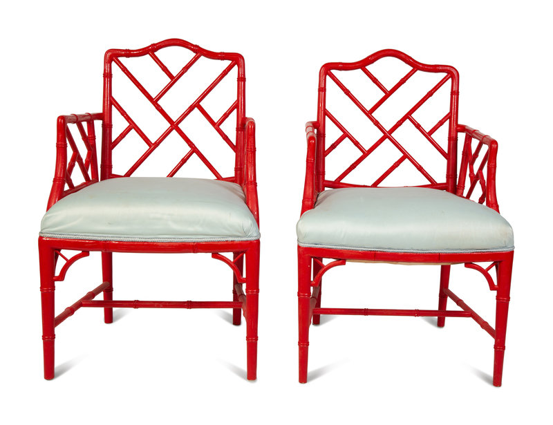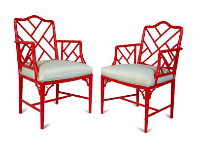 A Pair of Chinese Chippendale Style Red Lacquer Armchairs