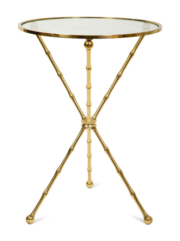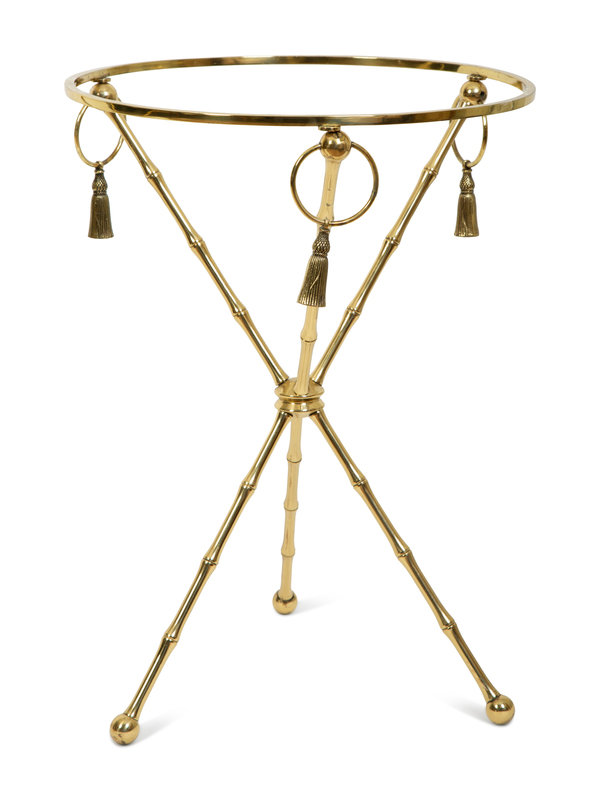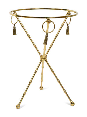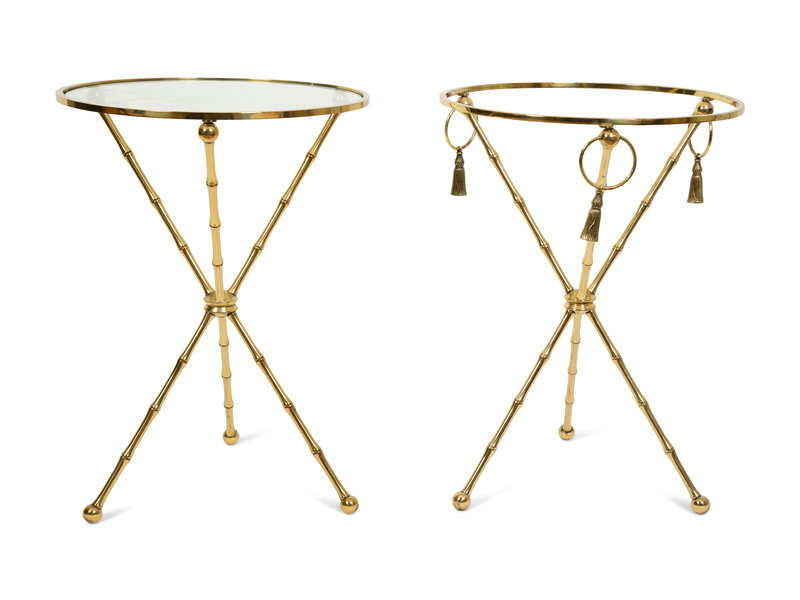 A Near Pair of Hollywood Regency Style Gilt Metal Faux-Bamboo Side Tables
