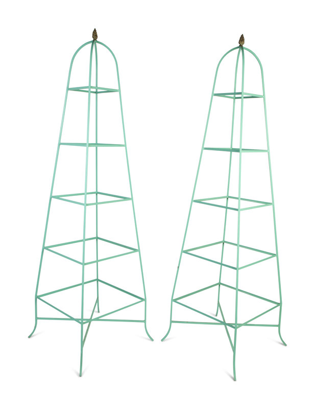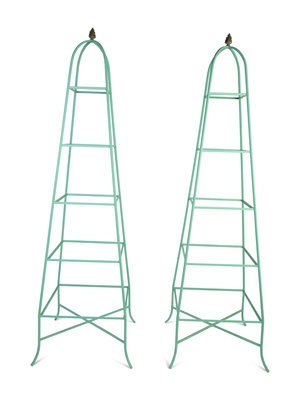 A Pair of Obelisk Form Painted Metal Five-Shelf Etageres