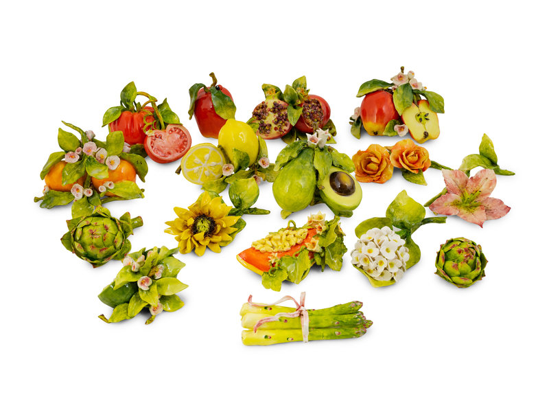 A Collection of Sixteen Eva Gordon Ceramic Fruits and Vegetables