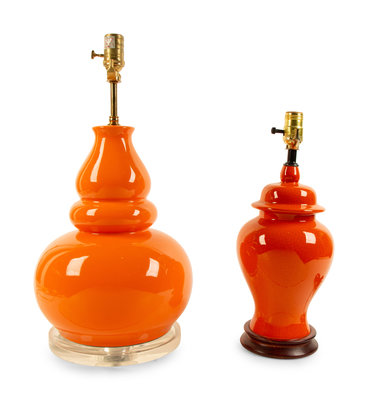 Two Orange Glazed Table Lamps