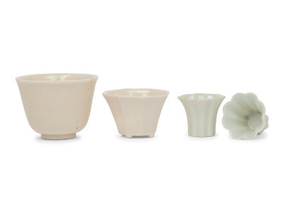 清中期 甜白釉瓷杯四件