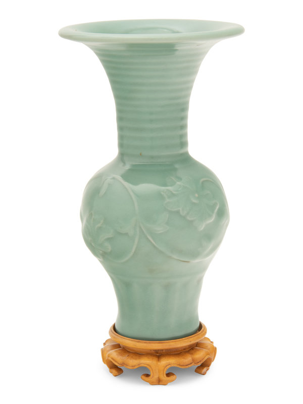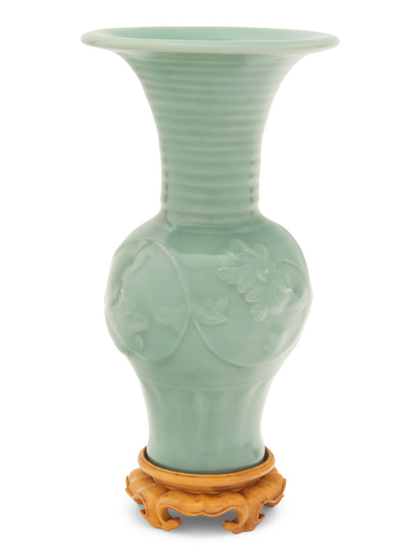 A Longquan-Style Celadon Glazed Porcelain Gu-Vase