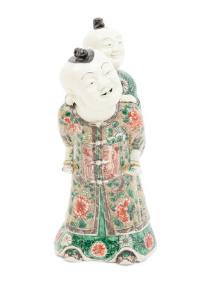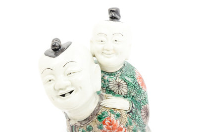 A Chinese Famille Verte Biscuit Porcelain 'Piggyback' Group