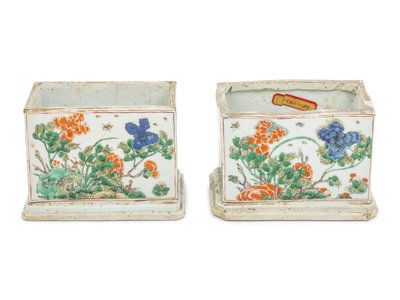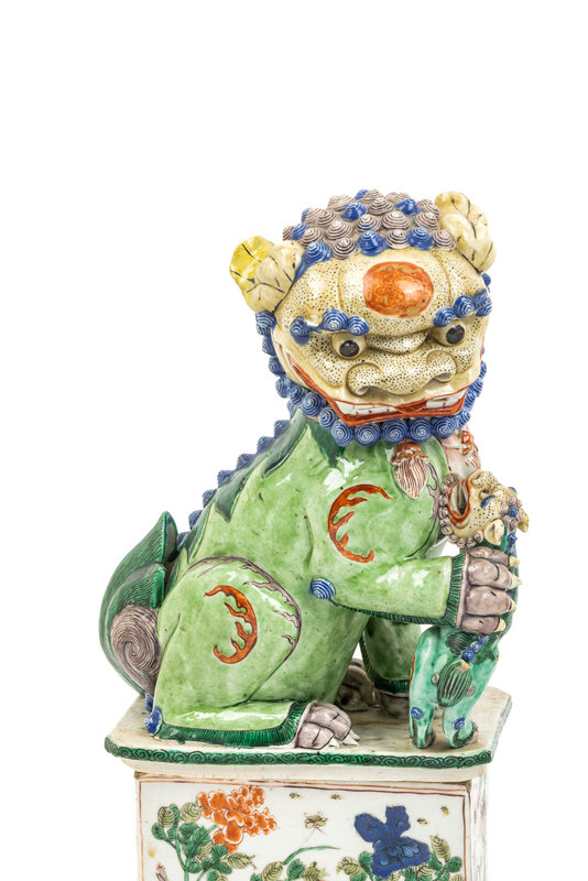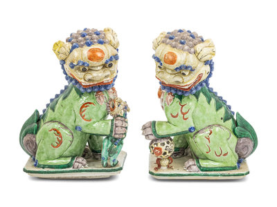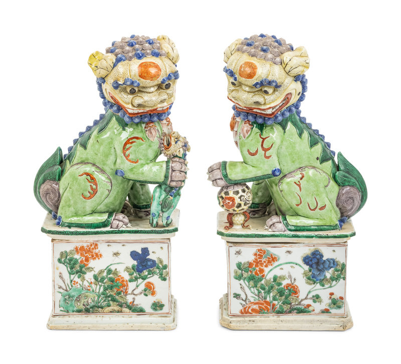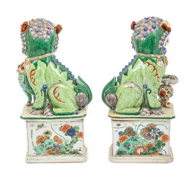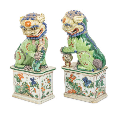 A Pair of Famille Verte Porcelain Figures of Fu Lions