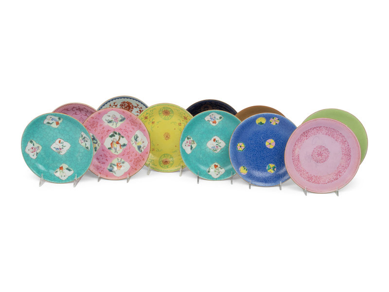 晚清/民國 粉彩、青花碟一組十一件