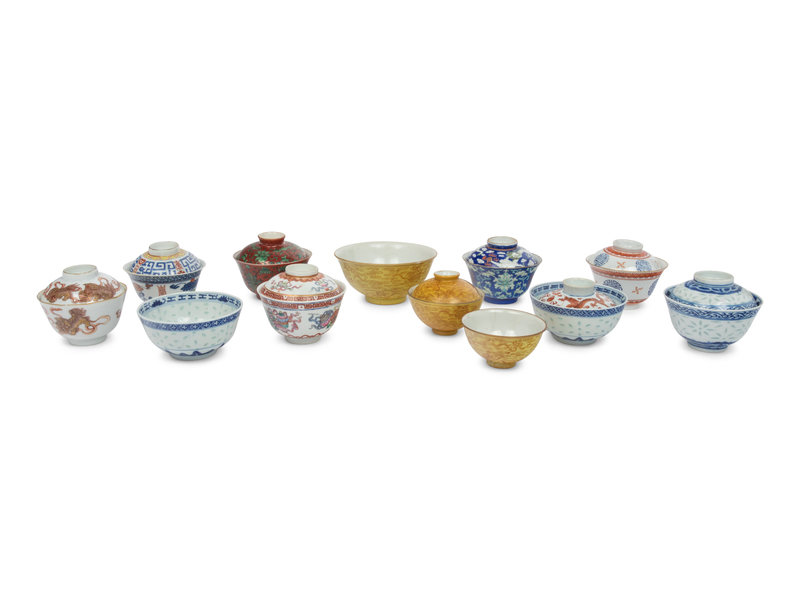 清晚期 粉彩、青花蓋碗一組十三件