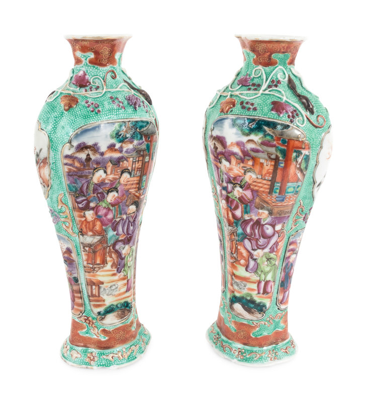 A Pair of Chinese Export Famille Rose Porcelain Vases