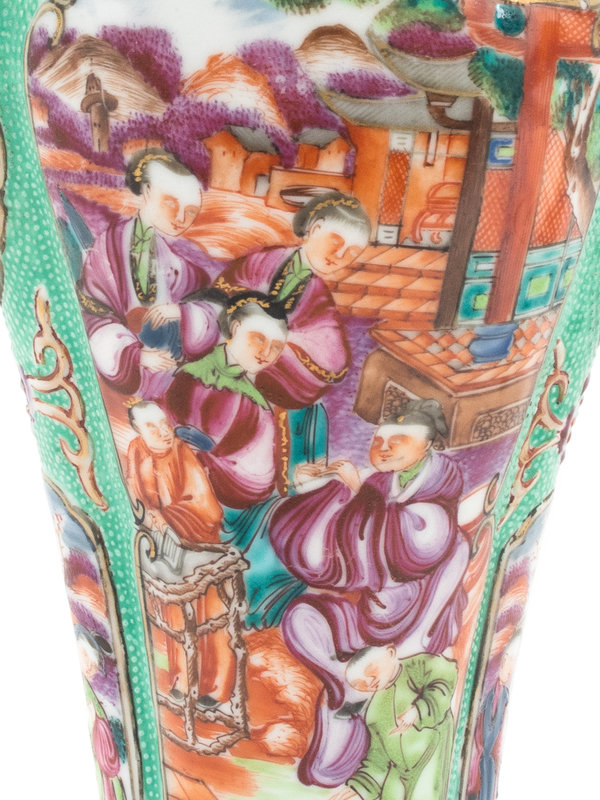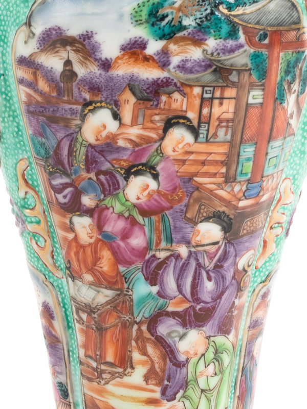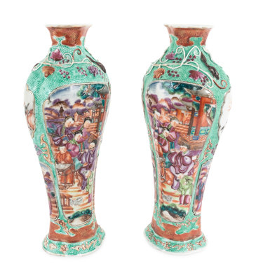 清中期 松石綠地貼塑開光人物圖賞瓶一對