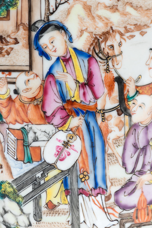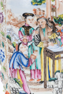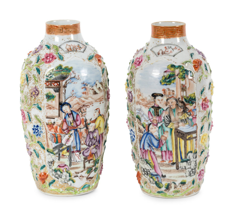 清中期 外銷粉彩貼塑花卉開光人物圖賞瓶一對
