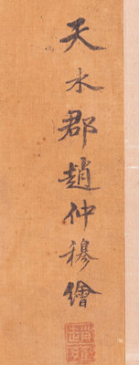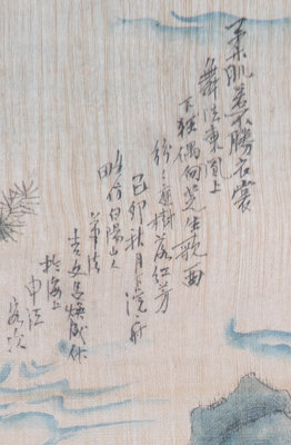 款識:柔肌弱不勝衣裳,舞法東風上下狂。偶向芝生歌一曲,▯▯庭樹落紅芳。乙卯(1675)秋月下浣府,▯仿白陽山人筆法。吉文呂煥成作于海上,申江客次。