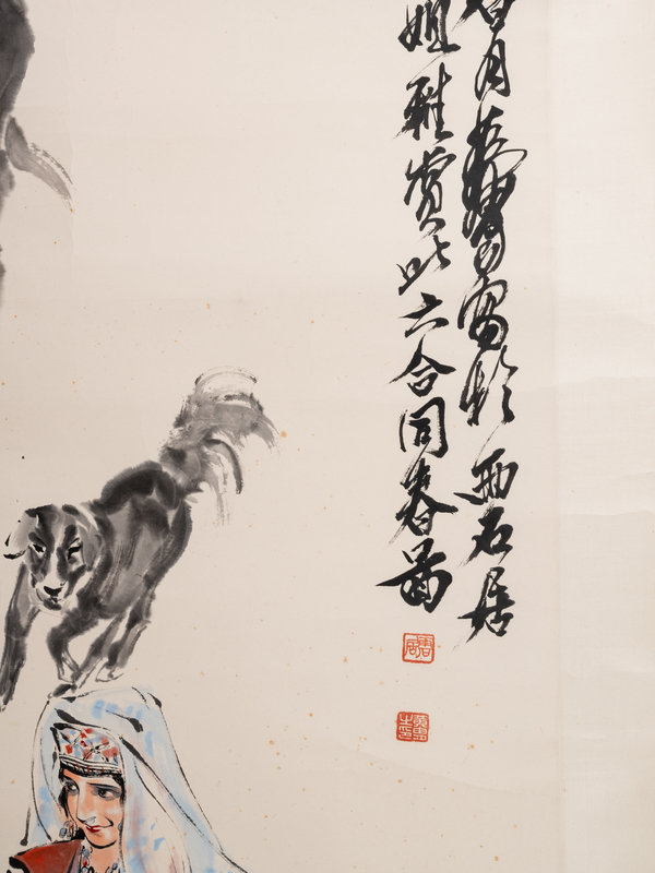 signed, inscribed and dated year yihai (1997), with three artist seals, Huangzhou zhi yin, yu shi ju, Li xian Liangshi.