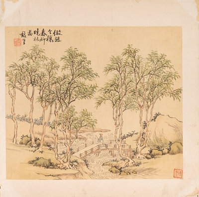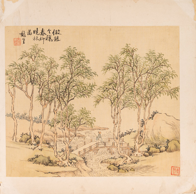 (5)仿趙令穰春柳曉林圖。馥堂。