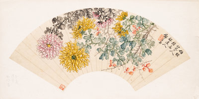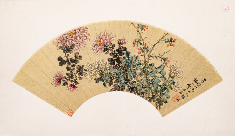 紙本設色,扇面