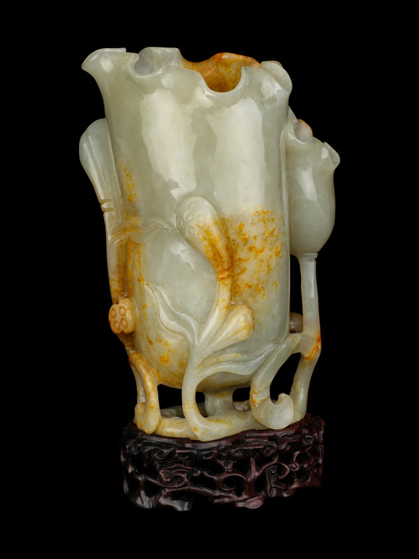 A Russet and Celadon Jade Lotus Cup