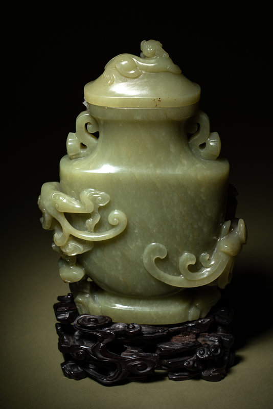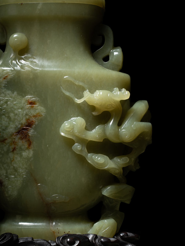 A Carved Yellow Jade Covered Vase