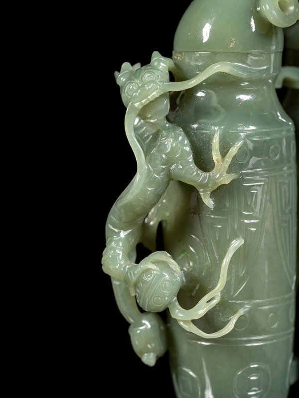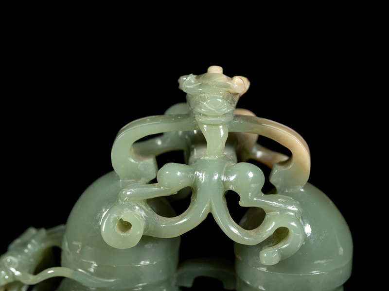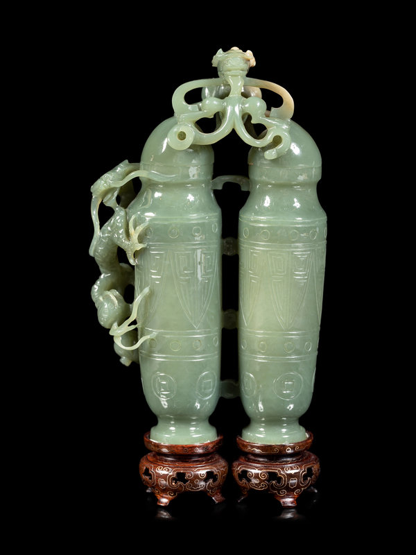近代 青玉仿古螭龍紋雙聯瓶