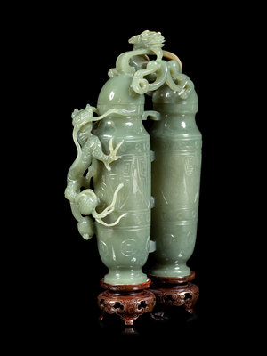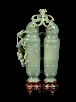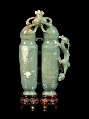 A Carved Serpentine Double Vase and Cover