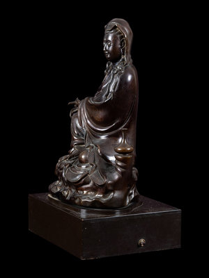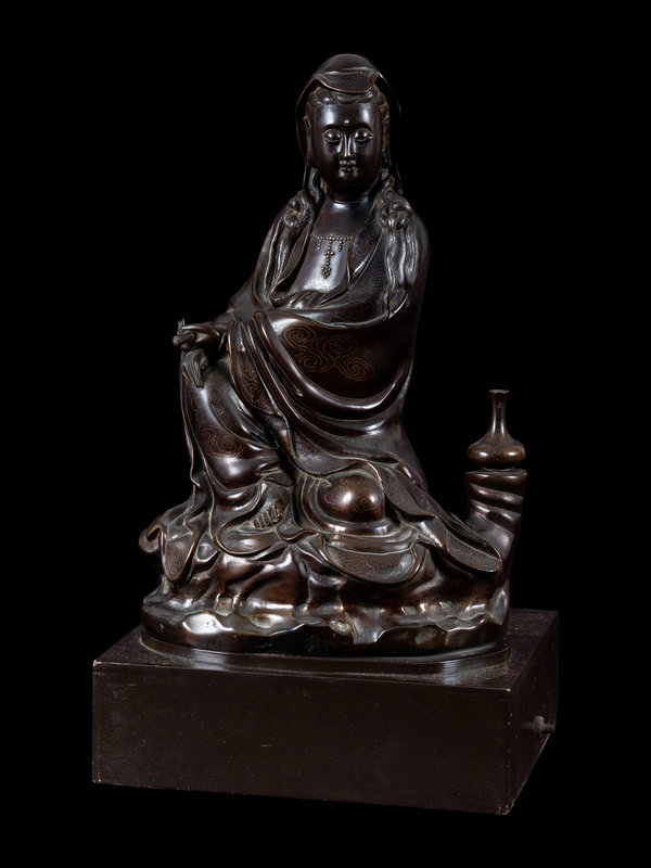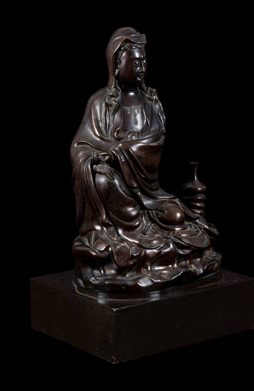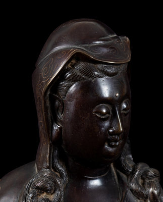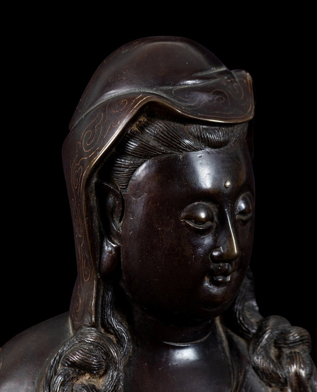 A Silver Inlaid Bronze Figure of Guanyin