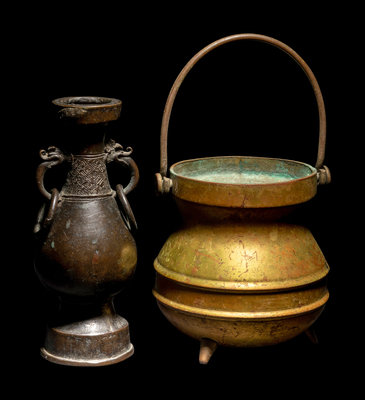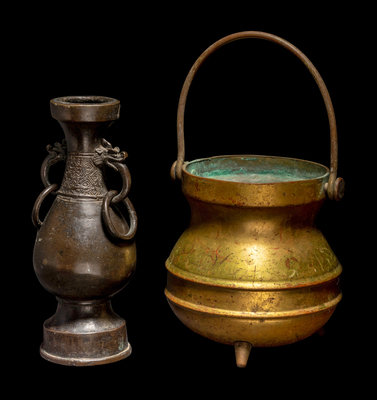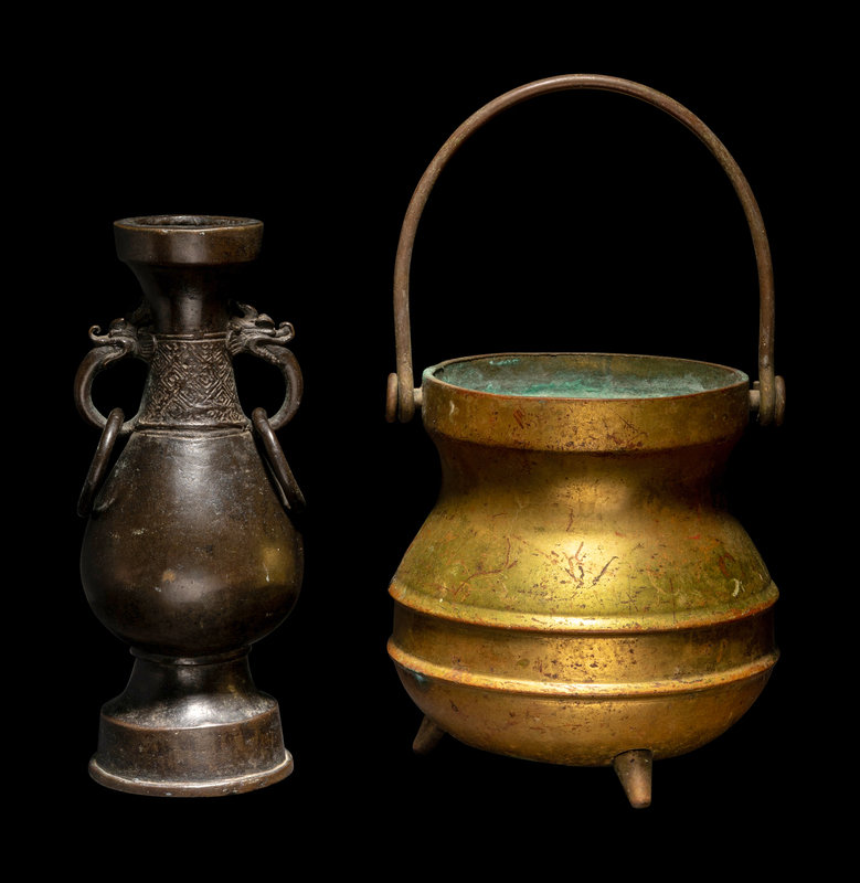 comprising a Ming dynasty handled vase, and a gilt bronze vessel.