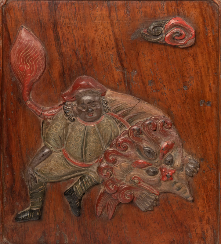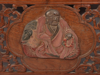 明 黃花梨鏤雕嵌寳羅漢圖挂屏三件