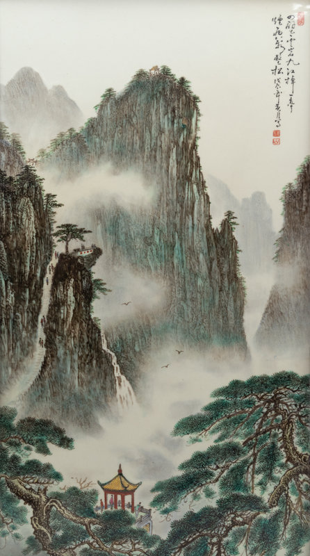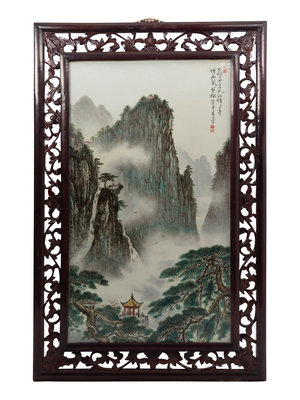 粉彩廬山圖瓷挂屏