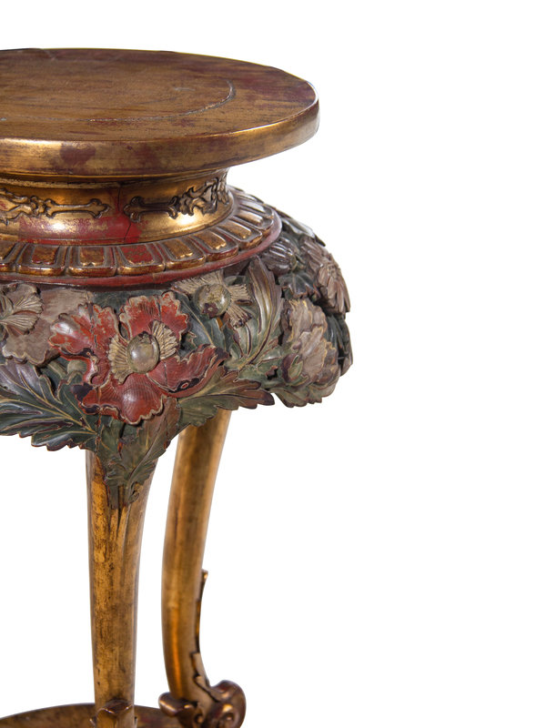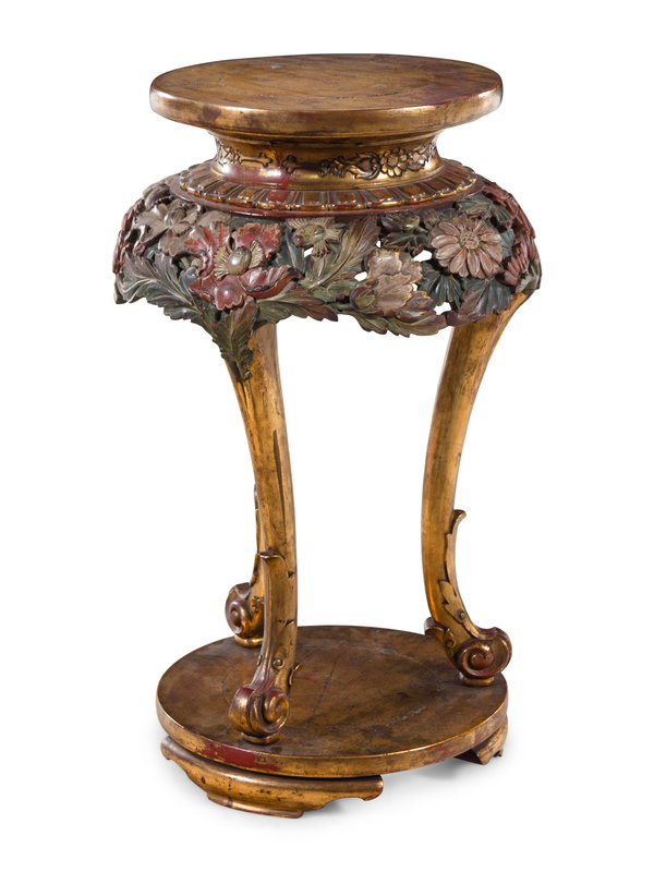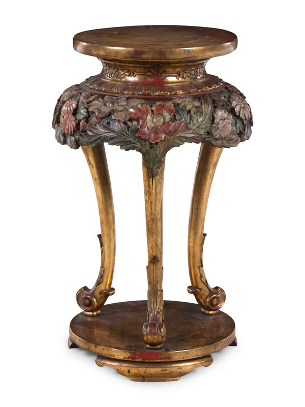 A Gilt and Polychrome Lacquered Carved Wood Stand, Huaji