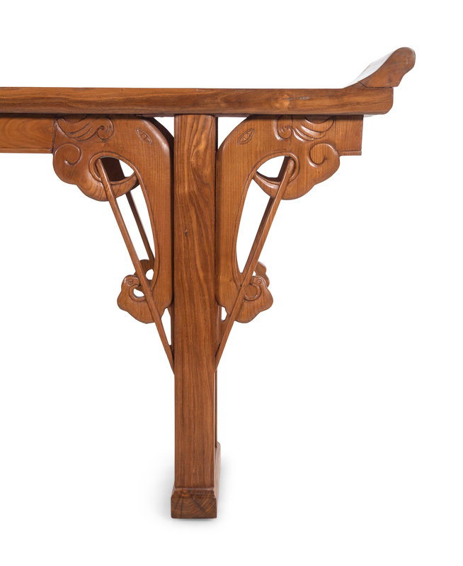 近代 榆木象頭紋夾頭榫翹頭案