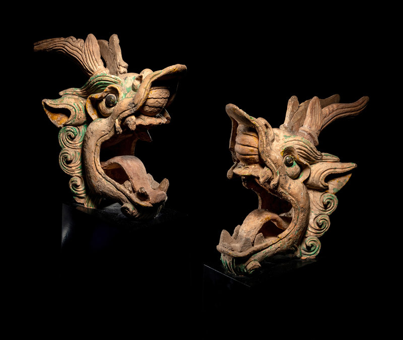 A Pair of Glazed Dragon-Form Roof-Tiles