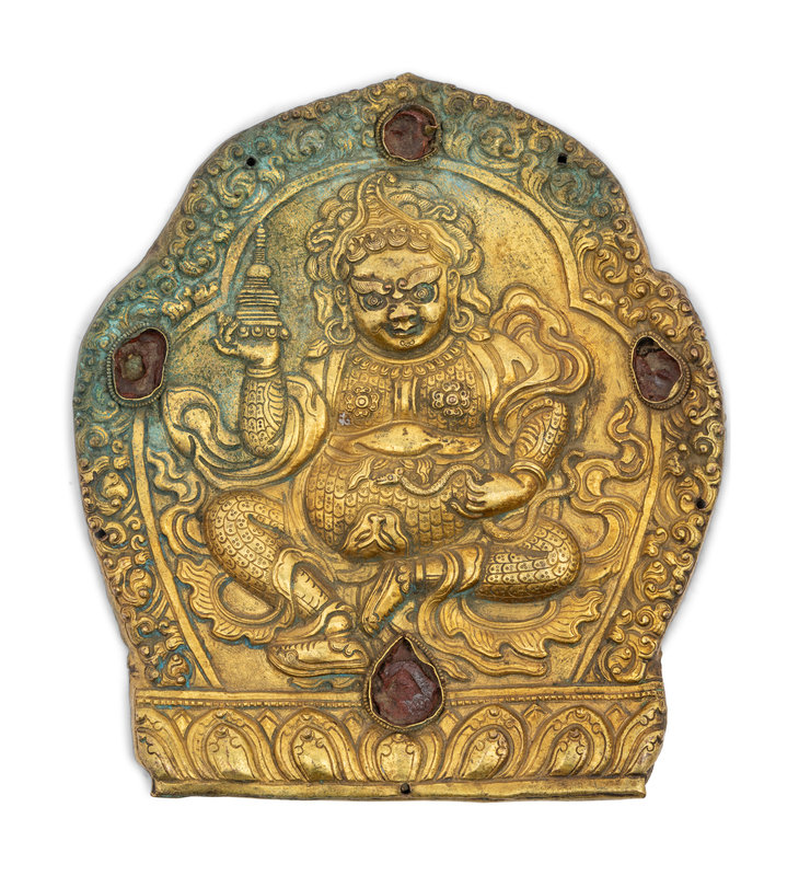 晚清-民國 銅鎏金錘揲飾板一組四件