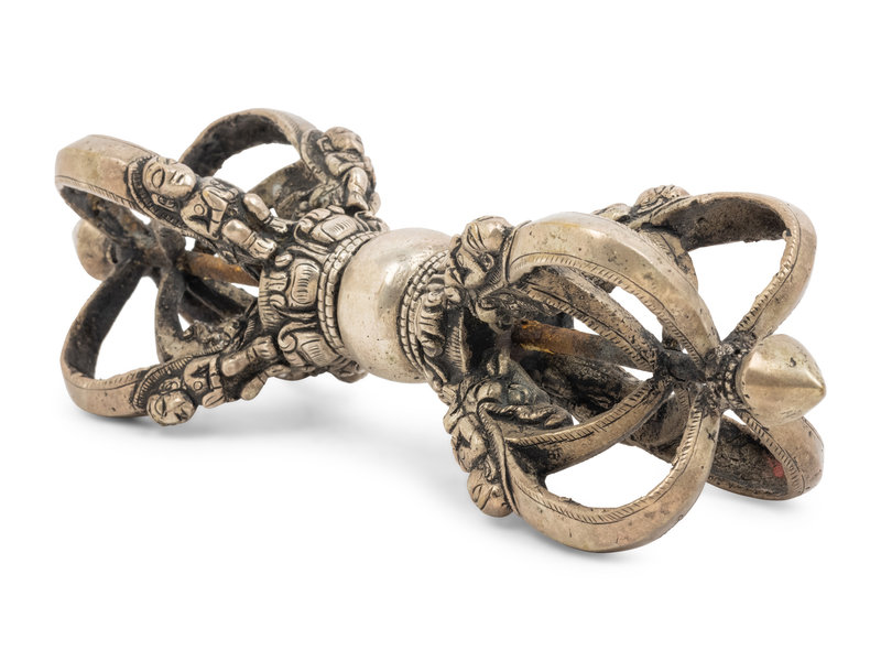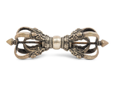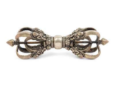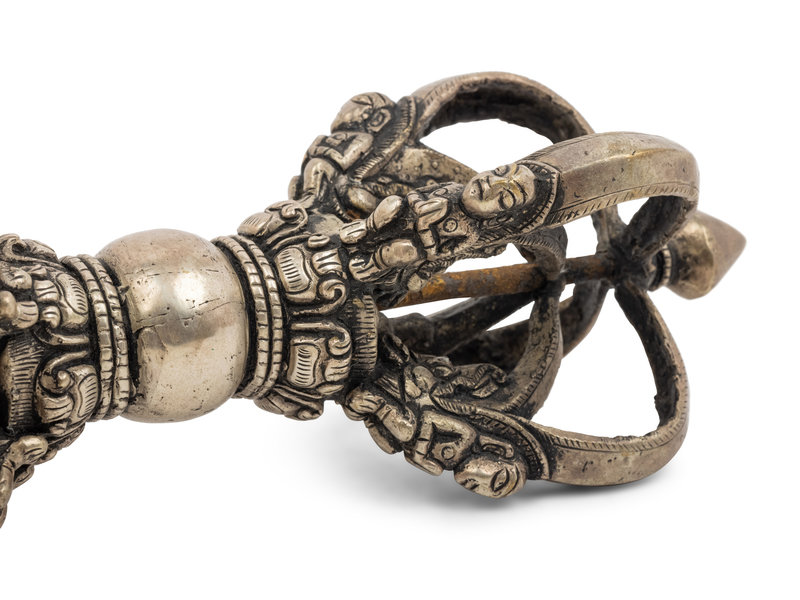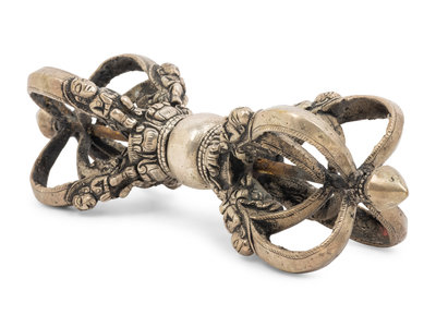 A Large Tibetan Silver Five-Pronged Vajra Dorje