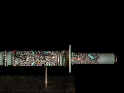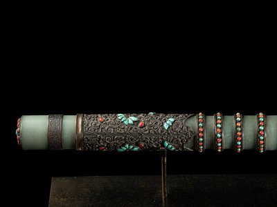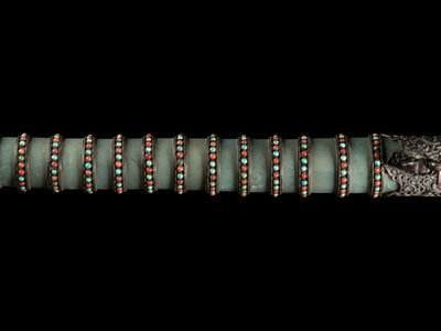 A Nepalese Coral, Jade Turquoise Inset Silver Jade Sword