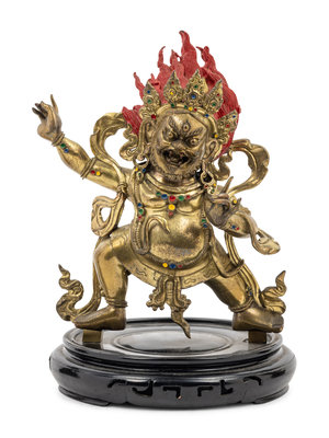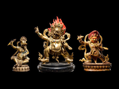 晚清-民國 銅鎏金迦樓羅、金剛手菩薩及大黑天