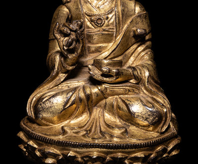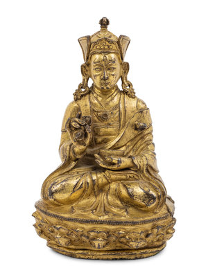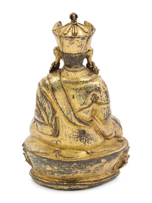 A Tibetan Gilt Bronze Figure of a Seated Karmapa