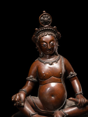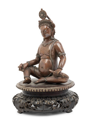 A Nepalese Bronze and Silver Figure of Seated Kubera