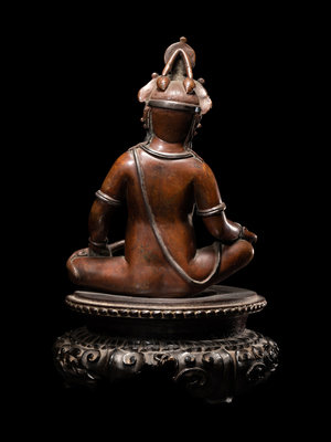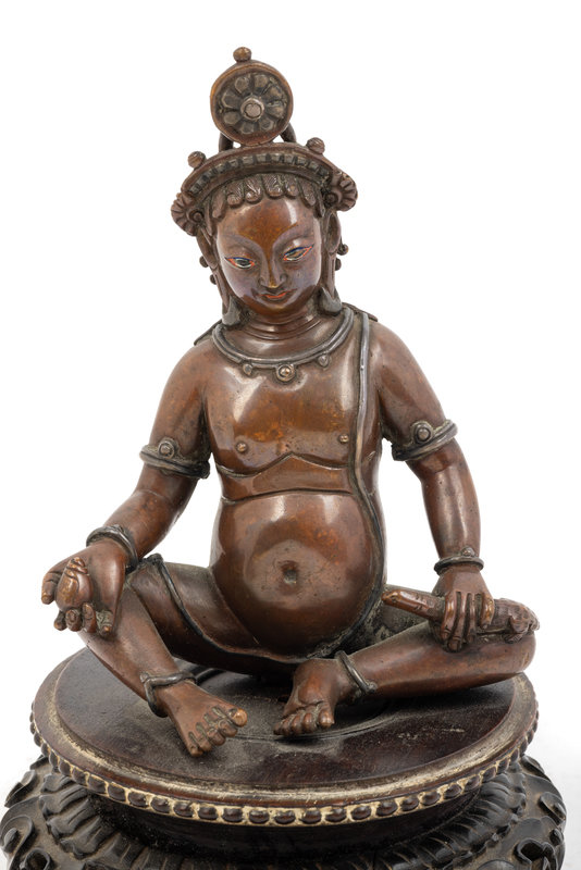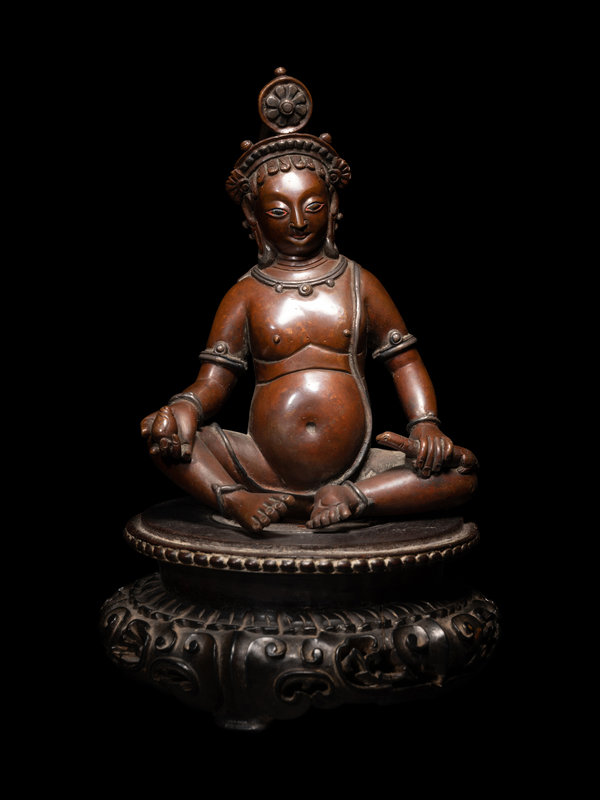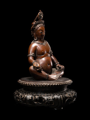 尼泊爾銅嵌銀俱毗罗坐像 連木座