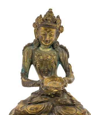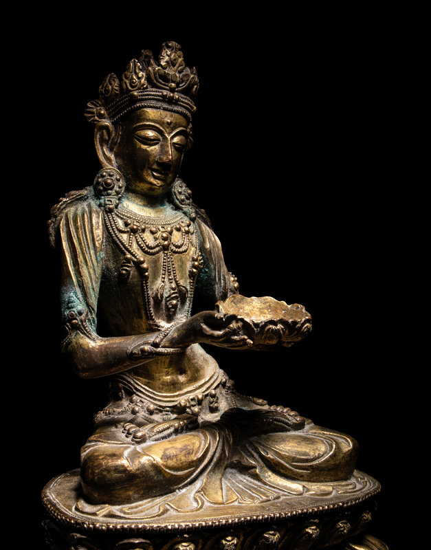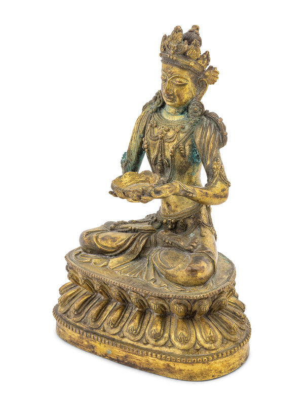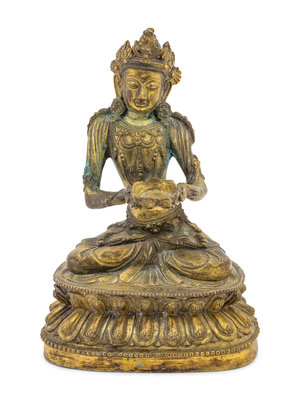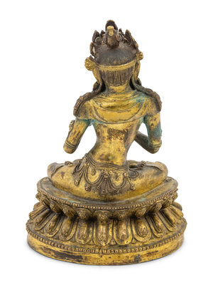 An Unusual Gilt Bronze Figure of Seated Maitreya