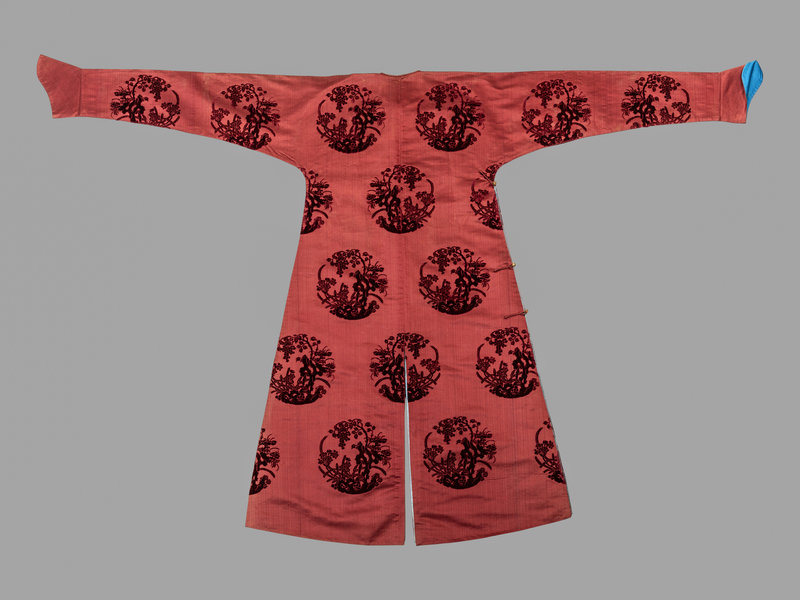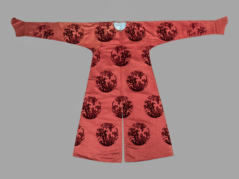 A Crimson Ground Cut Velvet Silk Lady's Informal Robe