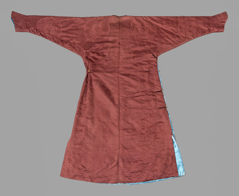 清中期 赭緞地暗花團龍紋女棉服