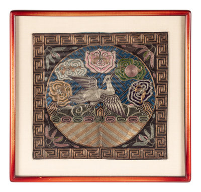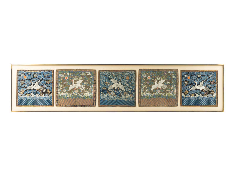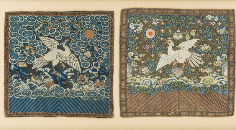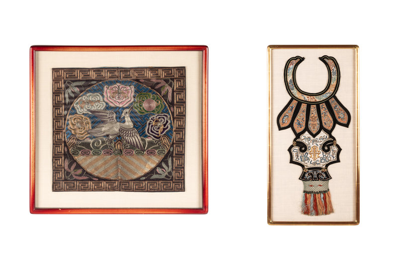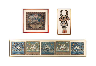 comprising two pairs and an individual rank badges, the first pair kesi, the others embroidered silk; and a embroidered silk cloud collar.
