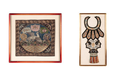 晚清-民國 織綉補子、云肩一組