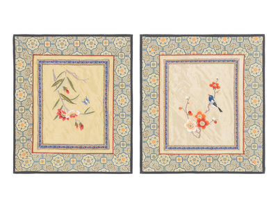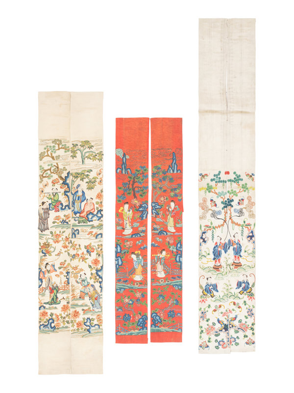 Thirteen Embroidered and Woven Silk Articles
